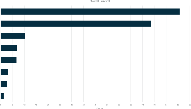 Figure 2. Swimmer's plot of the OS of patients with metastatic ACCB.