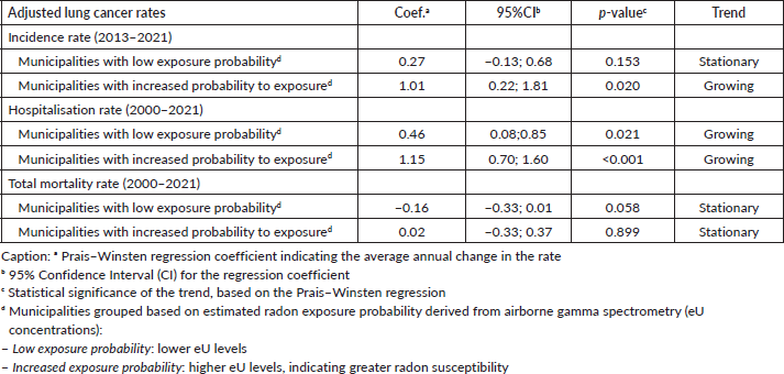Table 2. Trend in adjusted lung cancer rates in 37 municipalities of Rio Grande do Sul by radon exposure.