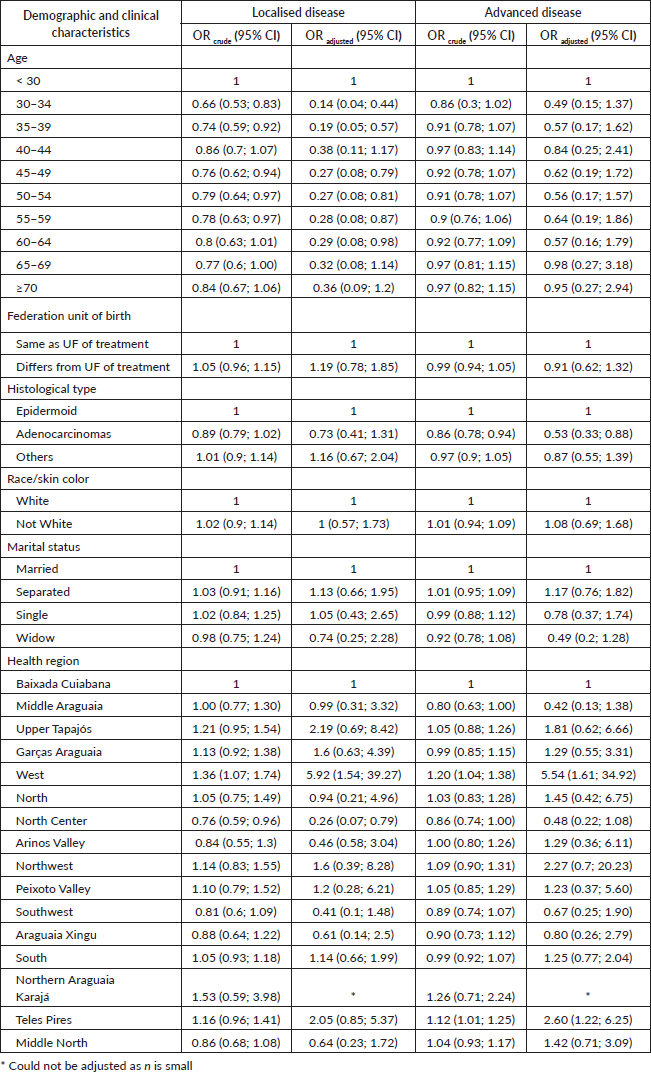 Table 3. Association between sociodemographic and clinical characteristics of women with CC and localised and advanced staging of the disease, Mato Grosso, 2002–2021.