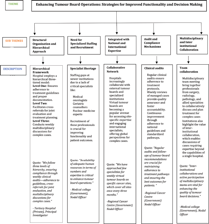 Along with the quantitative survey, a qualitative exploration was carried out using open-ended questions with healthcare professionals involved in tumour board operations on challenges and methods to improve MTB functionality. The objective was to have a comprehensive understanding of tumour board functions, including organisational structure, staffing issues and collaboration between institutions.