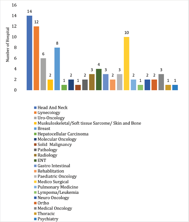 Most private hospitals are well equipped with multidisciplinary care facilities and cater to higher socio economic class, which could explain the higher frequency of tumour board meeting (86.6%) in these institutions. A study analysing palliative care services in India found out that merely 26% of participating centres were in the government sectors indicating that non – government and private sectors are responsible for most of the palliative care services in the country [21]. These findings highlight the disparities in tumour board practices due to resource constraints, administrative priorities and staff availability in public hospitals.