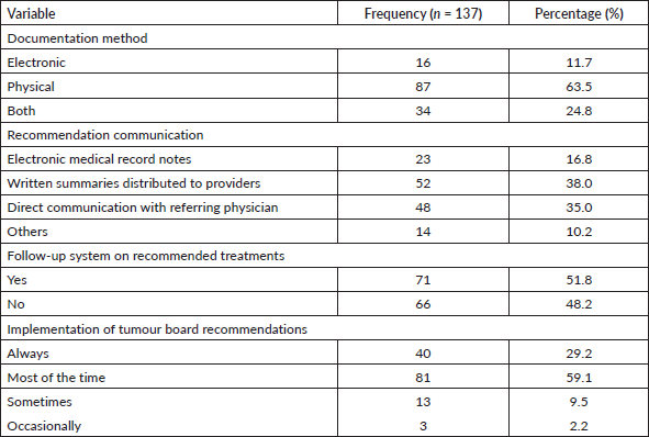 Table 3. Functioning and outcome tracking of tumour boards meetings.